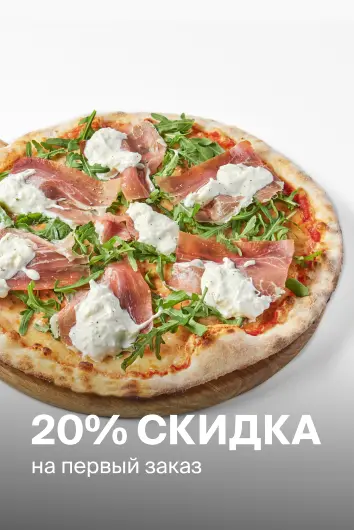 Тесто пшеничное, соус томатный, моцарелла, ветчина пармская, страчателла, рукола (30 см)